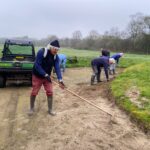 Yann notre jardinier, a commencé a travailler sur certains greens et avant greens. Le terrain est encore gras et il s’est embourbé 2 fois. Ceux-ci ont bien résisté aux intempéries et aux pitchs qui sont trop nombreux. Pour cela, nous allons responsabiliser nos membres sur les bonnes pratiques. Il espère pouvoir tondre les fairways dans 2 semaines car pour le moment les tondeuses ne sont toujours pas livrées.