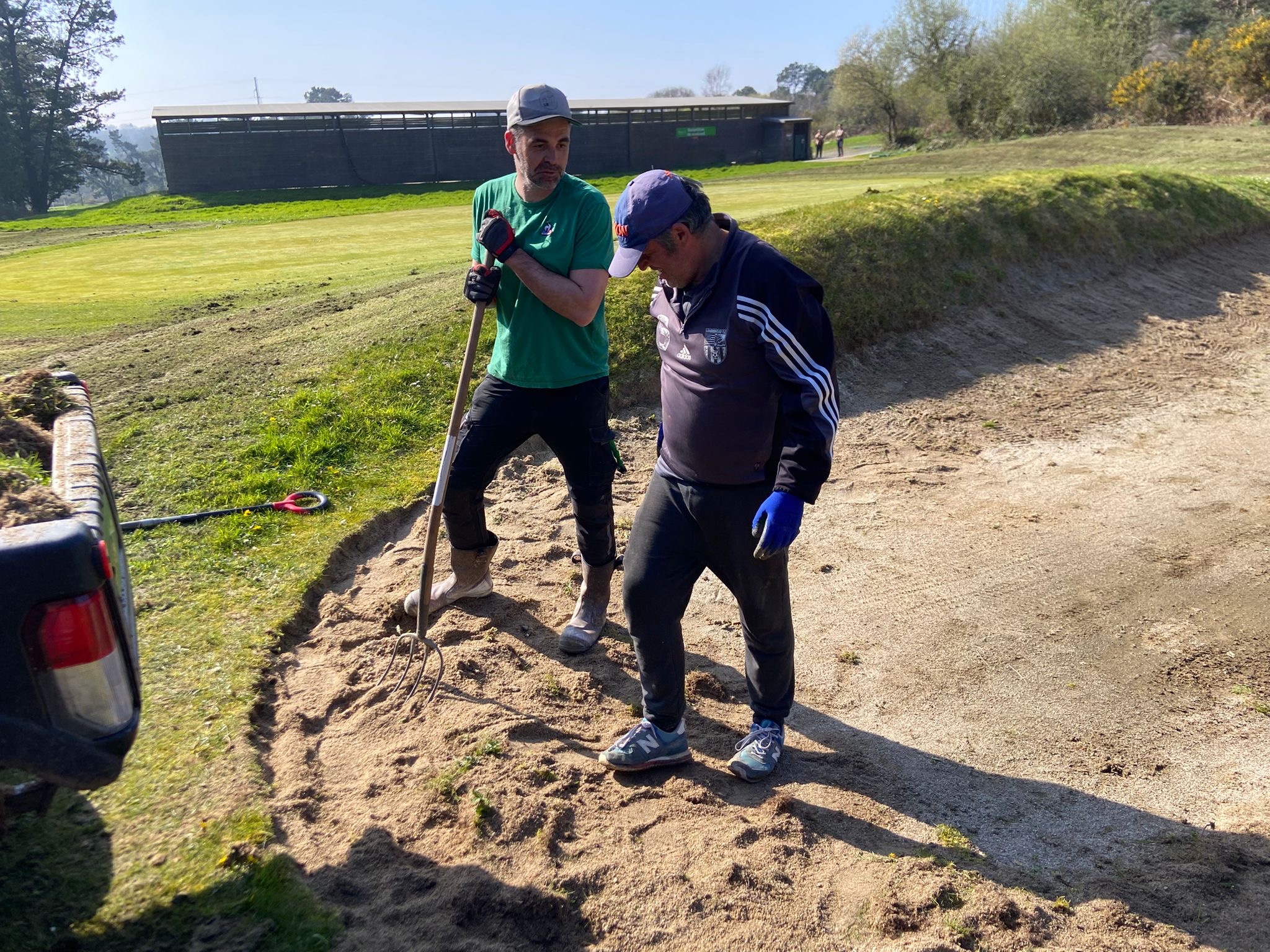 - Les bunkers et fairways ont déjà bénéficié des premiers soins de Yann, qui a commencé les travaux dès la livraison des matériels en début de semaine.