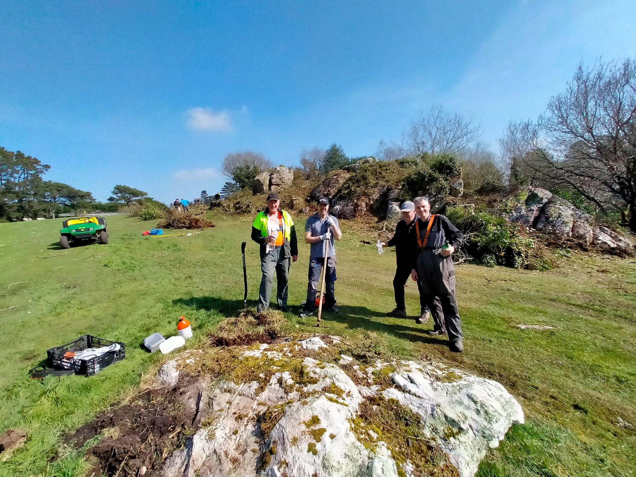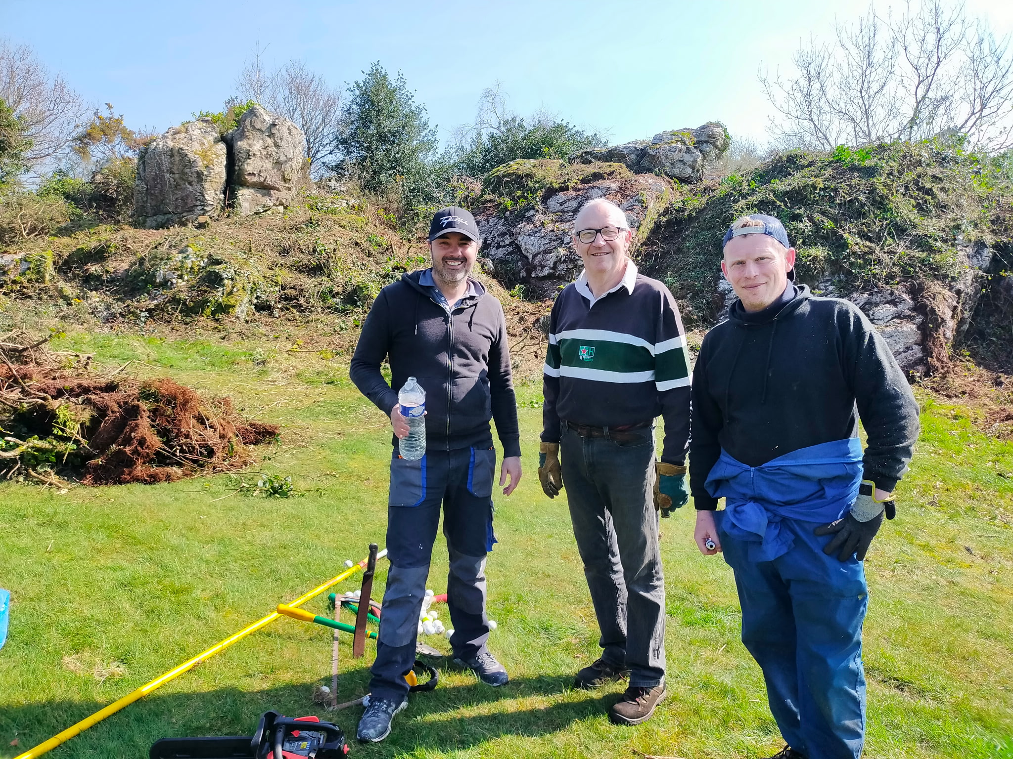 - Le trou N°18 a été le théâtre d’une véritable métamorphose : les rochers emblématiques, disparus sous la végétation, ont été redécouverts et mis en valeur. Ces éléments, qui font la signature de notre golf, ont suscité l’émerveillement de nombreux bénévoles, certains découvrant leur existence pour la première fois !